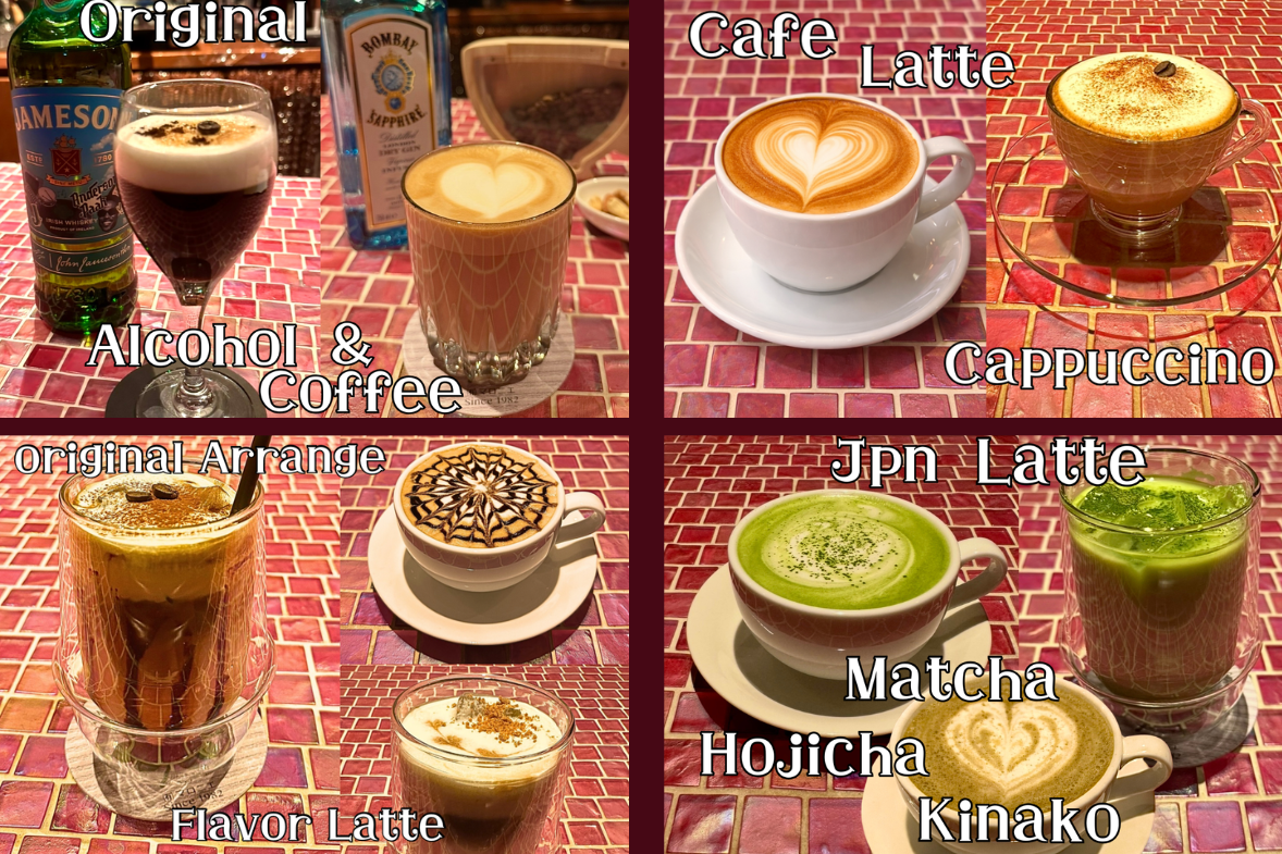 カフェラテやマキアート、 そして他では味わえない当店オリジナルの お酒とコーヒーを合わせたアレンジコーヒー等を是非お楽しみください♬